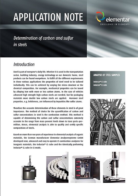 使用我们的 inductar® CS cube 元素分析仪对各种钢材样品进行碳和硫浓度分析。